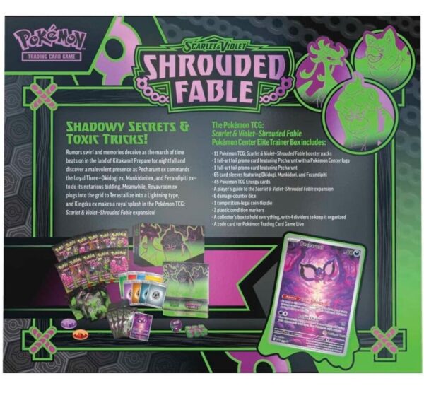 - This Pokémon TCG: Scarlet & Violet— Shrouded Fable Elite Trainer Box contains everything a player or collector needs!