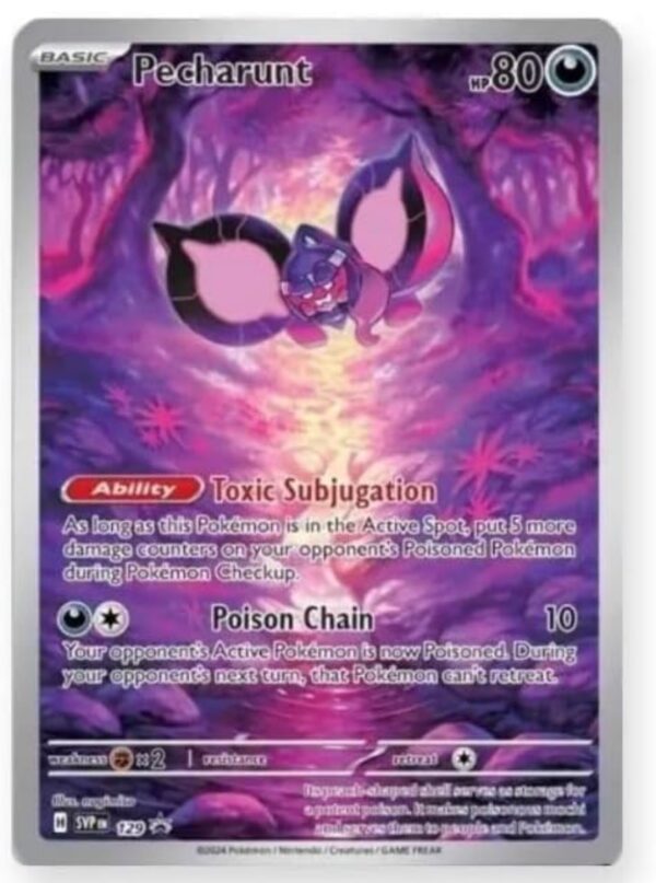 - Prepare for nightfall and discover a malevolent presence as Pecharunt ex commands the Loyal Three—Okidogi ex, Munkidori ex, and Fezandipiti ex—to do its nefarious bidding.