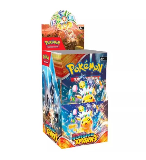 Dive into the vibrant world of Pokémon TCG with the Scarlet & Violet – Surging Sparks sealed box, an essential addition for collectors and players alike. This Full Sealed Box contains 18 packs, each pack filled with the potential for new strategies, powerful deck enhancement, and the thrill of discovering rare cards. With 180 cards in total, there’s an abundance of opportunity for exciting battles and expanding your collection.