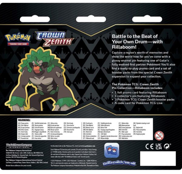 Capture a region’s worth of memories and show the world how far you’ve come with a glossy enamel pin featuring one of Galar’s fully evolved first partner Pokémon! You’ll also find a ready-to-play promo card and a set of booster packs from the special Crown Zenith expansion to expand your collection.